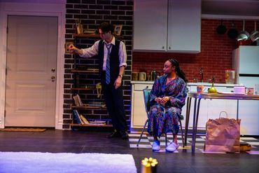 With only six weeks of rehearsal, I guided the cast on a journey of personal access, uncovering parallels between the characters they inhabit and their own lived experiences. Working with an intimate cast of four, we built collaborative moments that allowed the ensemble to make the world of the play feel immediate and relevant, from discovering how energy shapes the emotional landscape to designing and building elements of the space they inhabit. In many ways, the process mirrors what the play asks of its central relationship, a blending of ideals and perspectives in service of something shared. In that same spirit, our designers were given room to explore within the parameters Wilson specifies for the period, balancing fidelity to the text with the creativity needed to keep the play’s message alive, even decades after it was written.